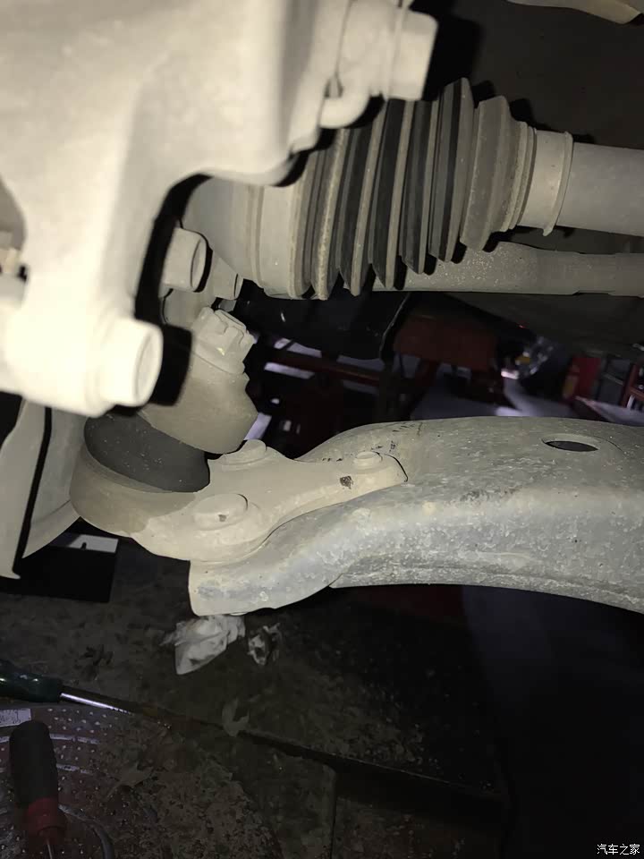 没啥毛病,一直就那样,就那样,就那样。下图发现有油渍,不知道是球头哪里的。。。这个发现比较早,一直也没处理,保养几次4S也没告诫啥。。。
