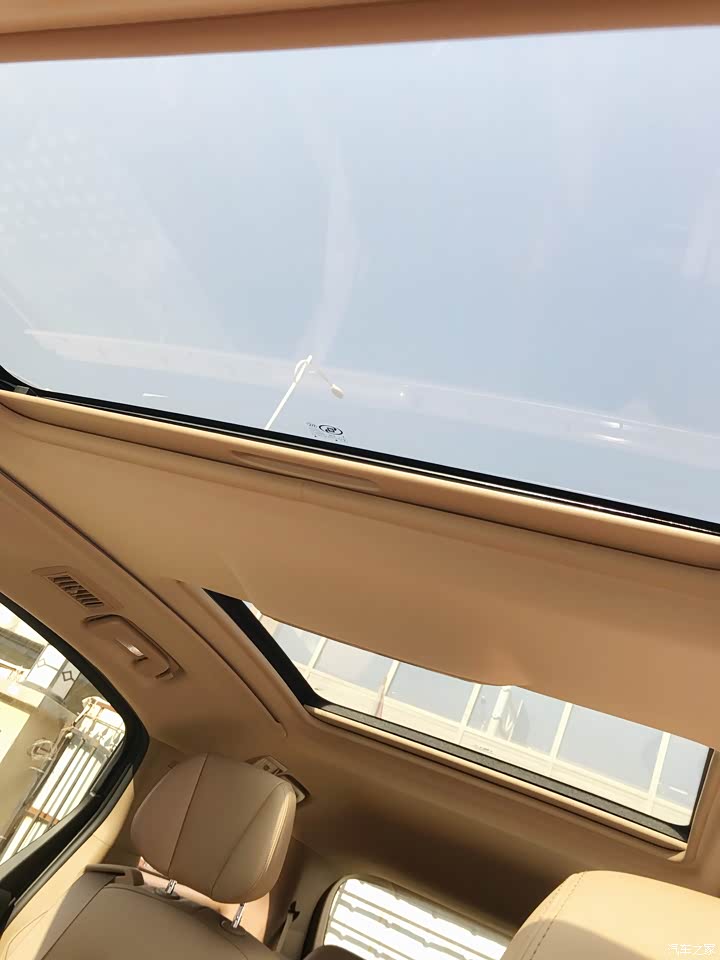内饰主要是米色,很温馨,但是感觉不耐脏,,还好座椅都是真皮的很好打理,个人比较喜欢全景天窗,出去玩的时候躺着看风景很美妙,车内做工大部分是软质材料,没有塑料的味道,整体感觉蛮划算的