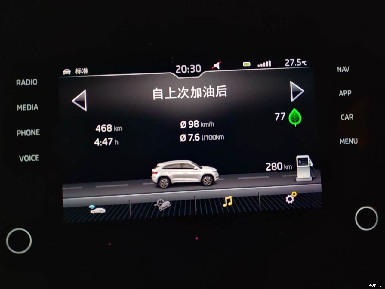 油耗表显总体良好,市区短途开空调油耗会比较高,最费一箱油综合每百公里13L以上,高速上油耗比较理想,7月初跑了个长途,全程空调,5个人满载行李,高速综合油耗每百公里7.8L油耗。这里要说一下,柯迪亚克表显油耗于实测油耗基本一样,不存在欢乐表,这点很好。