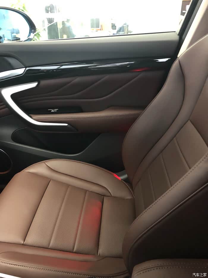 座椅是真皮座椅,手能接触的位置基本都是皮质包裹和软性材料,还是比较良心的。