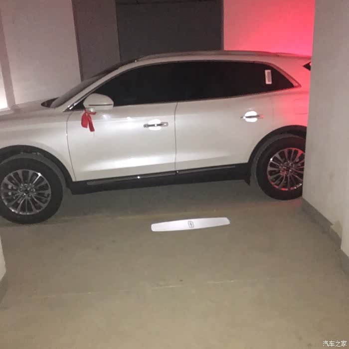 迎宾灯点亮,林肯车标LOGO投射到地面。光线暗处很漂亮。