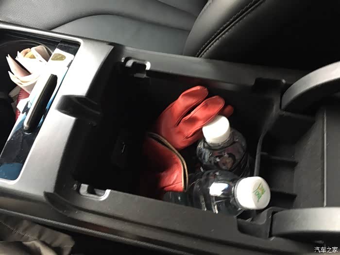 中控无档位,所以内部储物空间很多,扶手这个空间可以放几瓶水。而且双层设计,上层放驾照和小东西很方便。