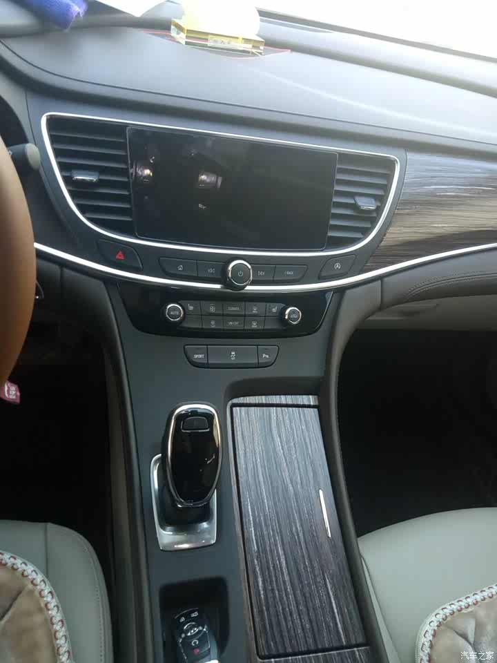 内饰的形容词当然就是豪华了。做工用料也非常用心,棕色的木纹装饰配上银色框架描边无疑是君越内饰的一大亮点,配上我选的座椅是白色,一下子内饰的豪华感就出来了。中控大屏幕,用起来很流畅,信息呈现也非常清晰。屏幕下方的功能按钮分布的合理均匀,可以看出设计师确实是下了功夫的。360度环绕式设计,给人十足的安全感。全景天窗是全系标配的,也是一大闪光点,毕竟天窗对于我儿子来说就是他的天堂~