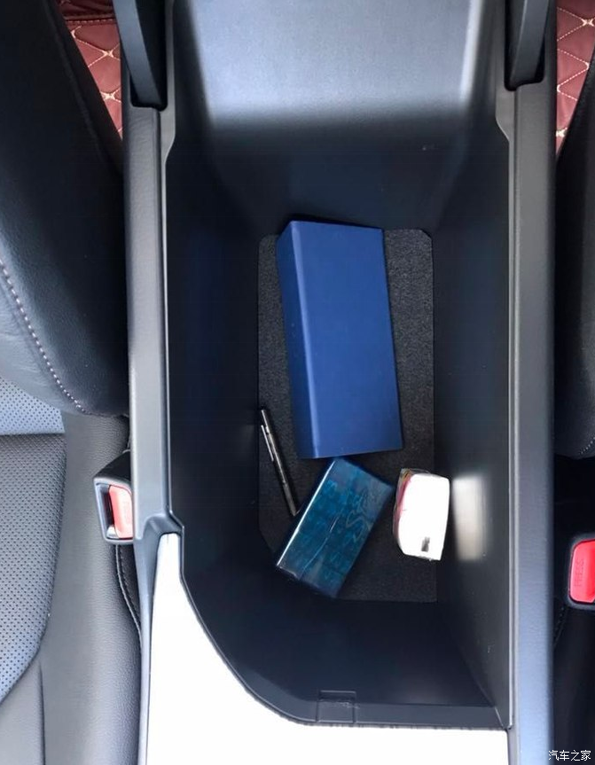 车内随处摸各处的手感都不错,中央扶手箱里面的空间是我见过的车里最大的,杯架和充电口都有,常用到配置比较完善。