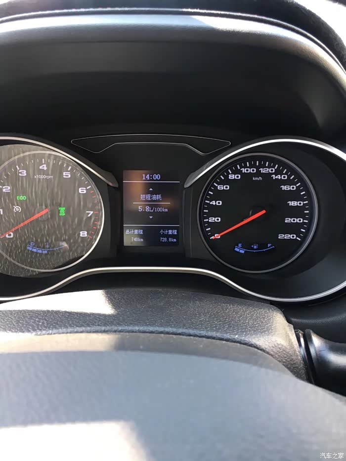 油耗较满意一般市区8个左右堵的时候,天气热油耗会低,一般下午油耗7个左右,最低跑过5.8。开定速巡航跑的。