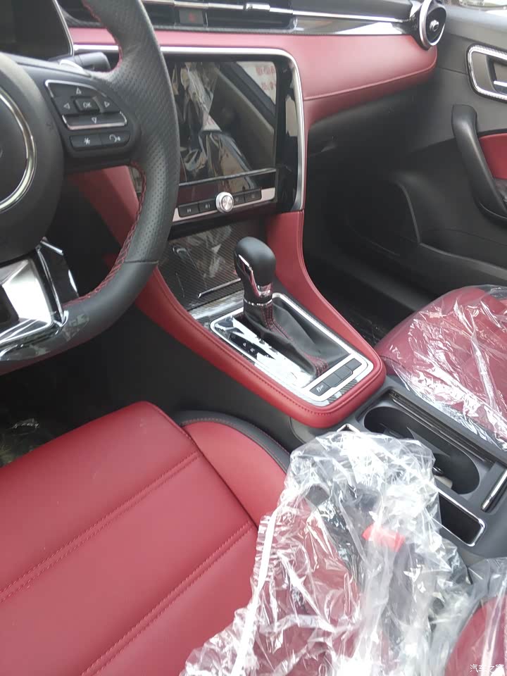 内饰整体设计很喜欢,配色很好,屏幕也很大,有10寸,感觉还可以,大面积的真皮,用的挺好的,还有碳纤维饰板,很上档次!而且车内没有异味,新车味道也不重,两天就把味道放完了,!