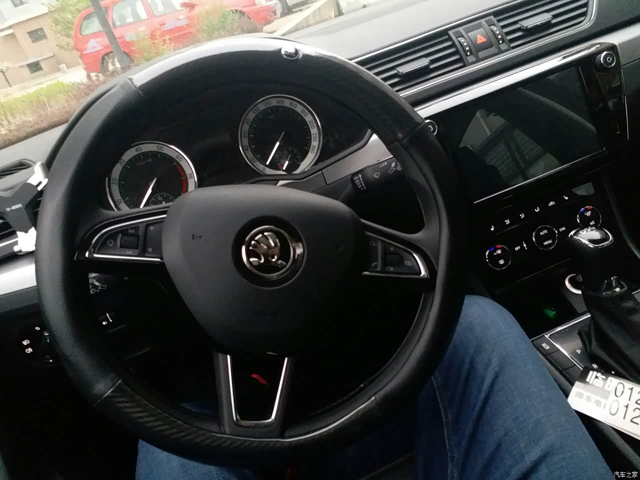 大众内饰需要多说吗?内饰简单实用,斯柯达本来就是追求实用的品牌,个人觉得使用要重于颜值。 那个大屏幕稍微有点不协调吧,想过换一个,但是价格有点高,暂时不换了。 方向盘有点细,个人比较喜欢粗一点的方向盘,所以某宝淘了一个方向盘套,选择标准就是便宜并且符合整体风格,所以就有了如图方向盘了。
