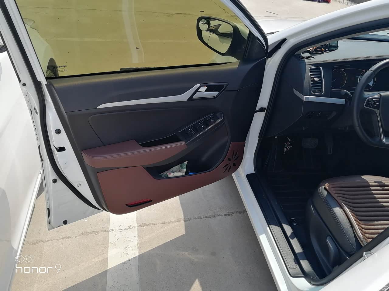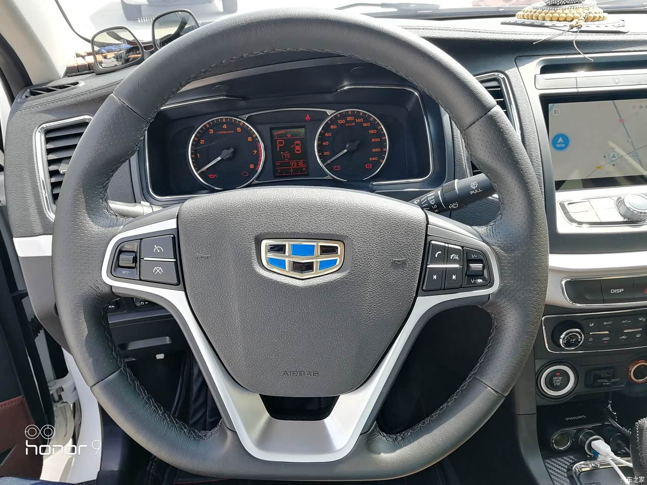 仪表台搪塑挺软的,门把手还做了蒙皮,很不错。方向盘还是真皮的,赞一个。