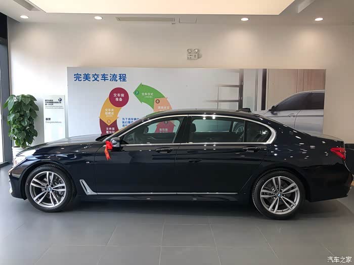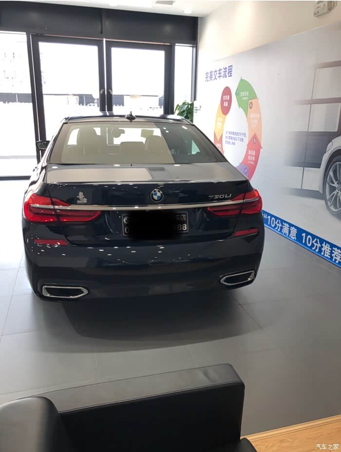 最喜欢的就是车的外观 因为我六月份才满21 还没大学毕业 又非常喜欢这类D级轿车 所以不希望有太老土的外观 原来考虑过中东版的7系 看了中规以后感觉中东版简直没法看 而且中规有运动套件和M的轮毂 销售说买中东想改一套运动套件也要几万 考虑到以后保养也方便 就提了中规 在买之前原来想选滨海湾灰色 但是我妈觉得这种颜色巨丑 我不想要黑色 因为觉得黑色像开我爹的车 年轻人嘛还是比较虚荣 当时想的是为了保值率买黑色然后自己去贴车身改色膜再换个副厂的760轮毂 然后销售告诉我副厂轮毂很不安全而原厂的我的车型选配不了 那就作罢 本来已经准备好提黑色了 猛一下看到了店里淘汰下来的试驾车 嗯 炭黑色 真的很特别 远看像黑色 阳光下是蓝色 很符合年轻人的气质 当时就和家里确定了要这个颜色 也算一步到位了 不用再折腾改颜色和轮毂的事情。