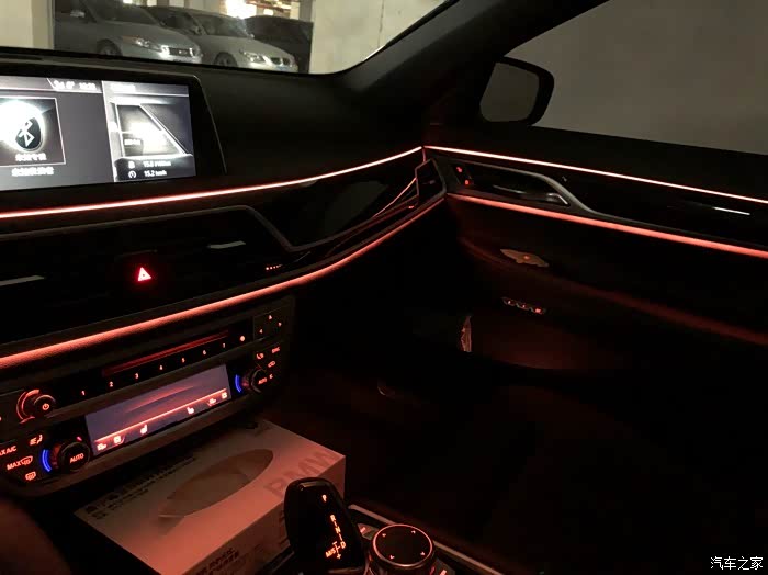 很多人吐槽七系的内饰远不如S 我觉得不能这么说 这毕竟是两个风格 两个车我都坐过 我觉得这是设计风格的问题 而且七系的内饰网图远远不及实车 拍是拍不出那种感觉的 原来我喜欢浅色一点的内饰色 觉得这个摩卡棕的暗不拉几巨丑 后来看到真车以后我就改变了想法 不过氛围灯确实和S级不能比 颜色不多 效果也一般