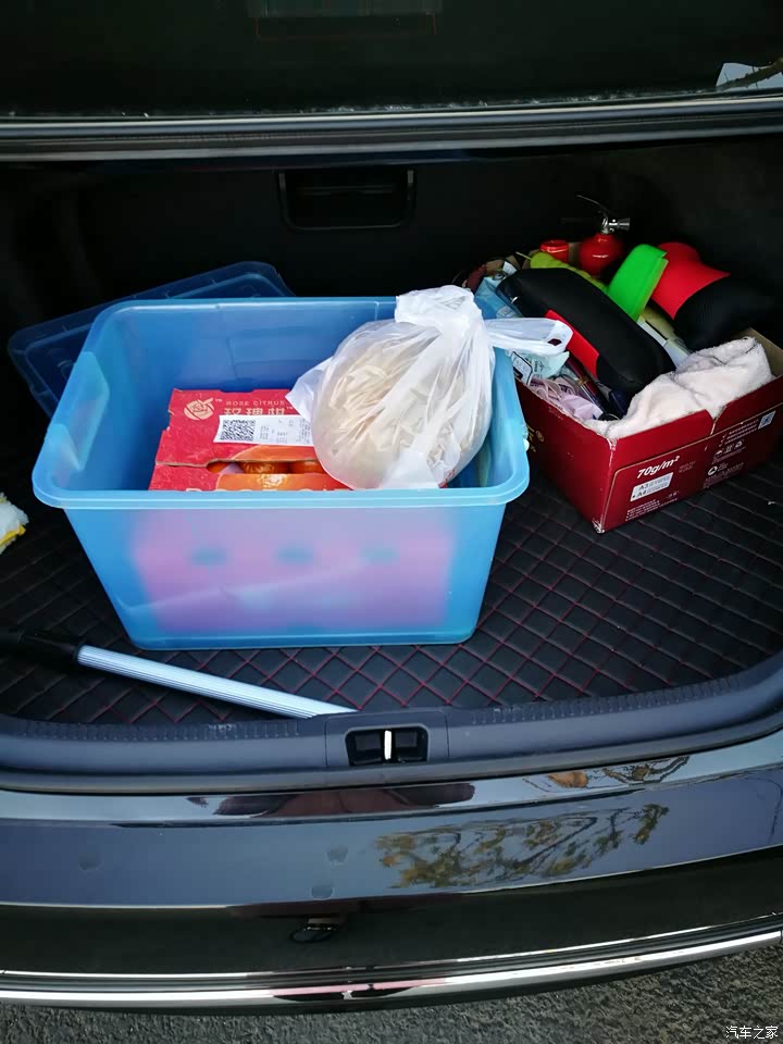 后备箱空间很大,很盛东西,前排中间扶手的储物箱和副驾前方的储物箱空间也很大,杂物都可以装进去。