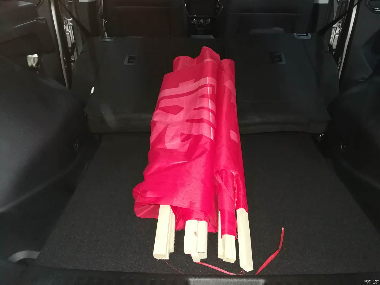 后备箱不能放些大的东西,自己坐广告布的,有的时候带点材料出去后背箱放材料如果大了点或者多了点就要把后排放倒了