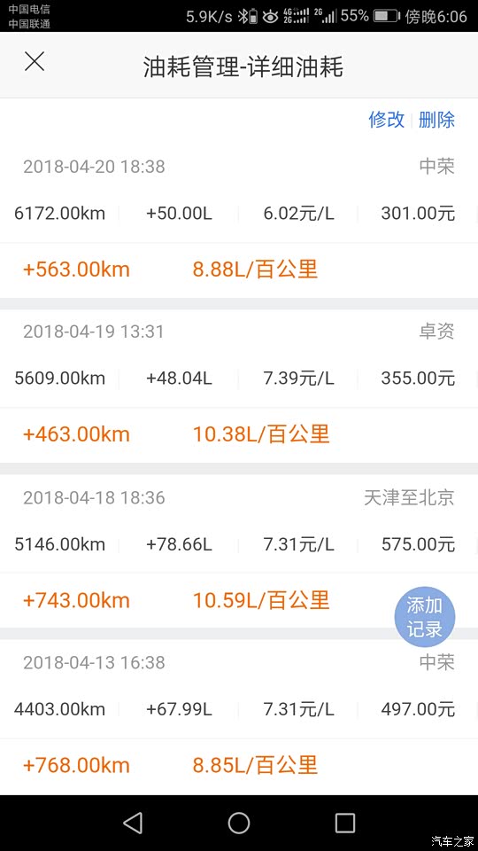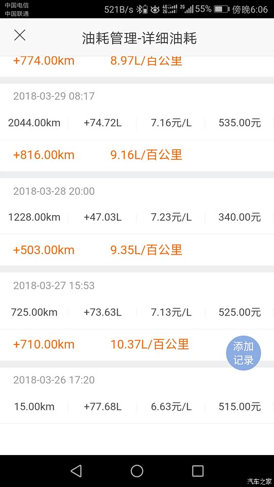 汽车之家油耗记录