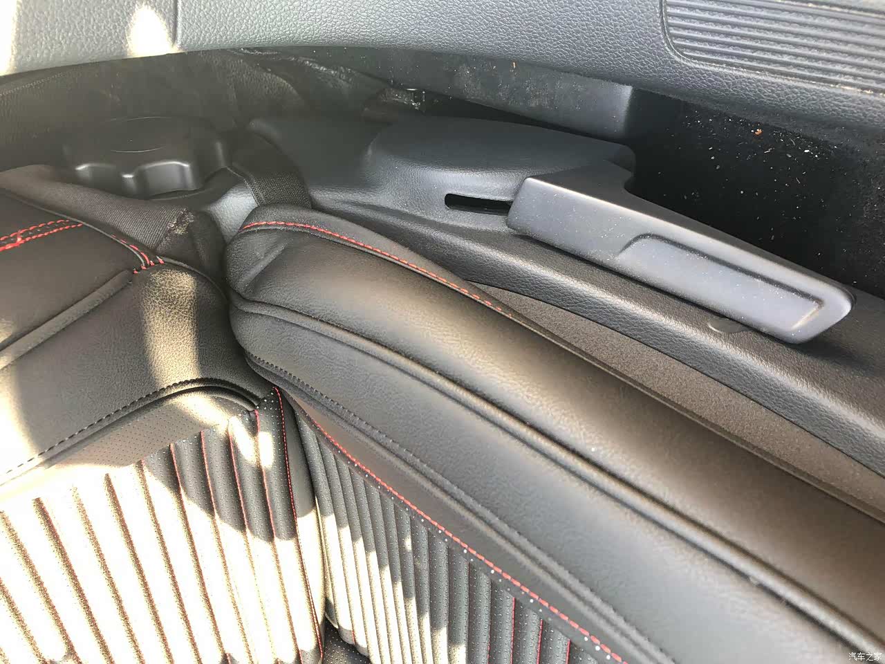 座椅调节如图所示-旋转式的把手,要一圈圈的拧才能调节座椅的倾斜度,哈哈哈哈哈,这是在锻炼手腕么,感觉座椅调节还是传统的拉手比较好用,要么就换成电动调节,设计师的心思无法理解!
