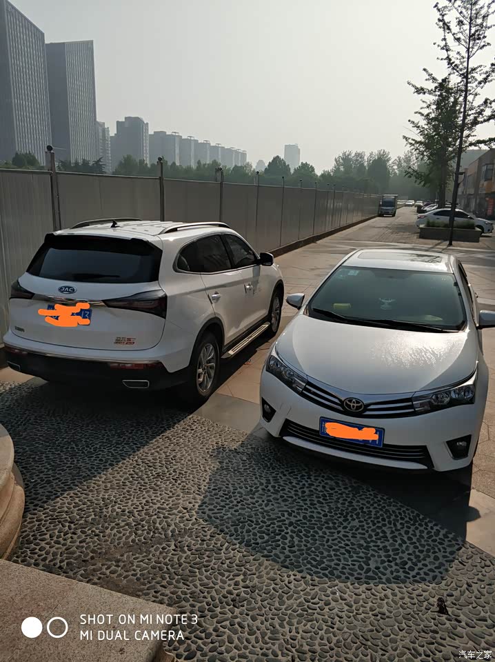 他这个身材作为紧凑型SUV,可以在家家比较一下,估计也就保时泰的T700可以比比了,车长4米7,车宽1米9,朋友的英朗可以安全的藏在我后面,找不到他,哈哈