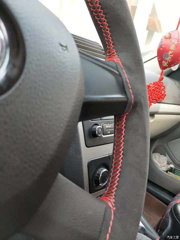 方向盘在冬天真是太冷了。在南方的朋友可能体会不到。尤其是在冬天的早上,你进入车里,手摸在方向盘上,那感觉只能用瑟瑟发抖来形容。所以果断上了手缝的方向盘套。