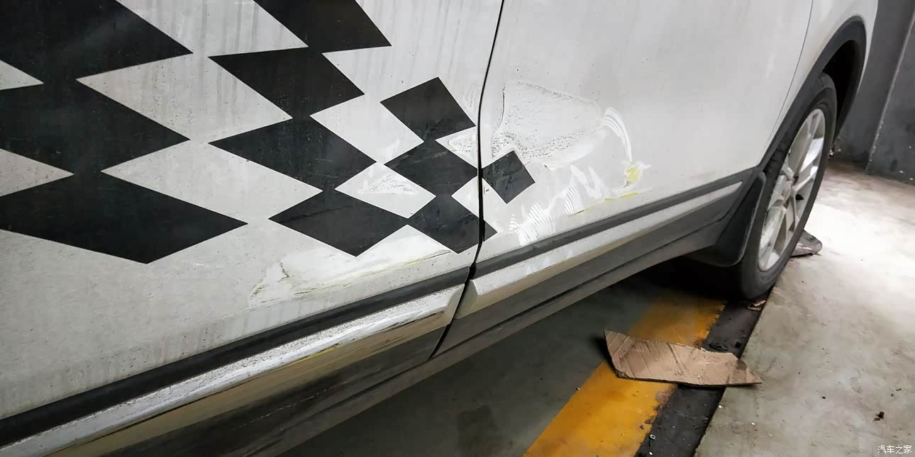 停车停外面,好脏,还有一个划痕,一个钣金都有坑了