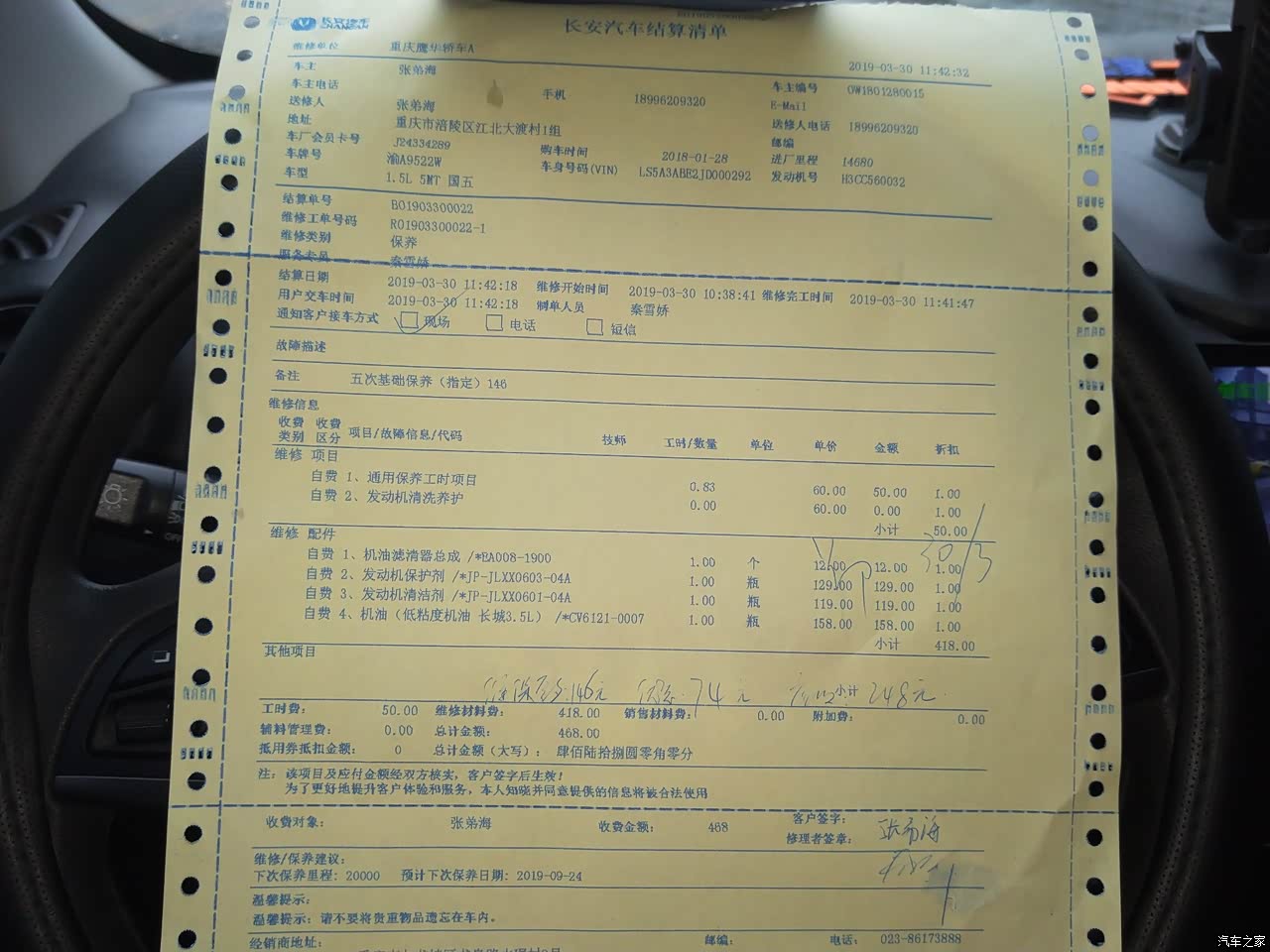 保养的话就是做了一次首保两次收费。由于有赠送的保养套餐,所以两次收费也基本上可以算没给钱。第二次的时候自己加了一个发动机清洗,遭了248左右,具体金额记不清了,反正差不多。