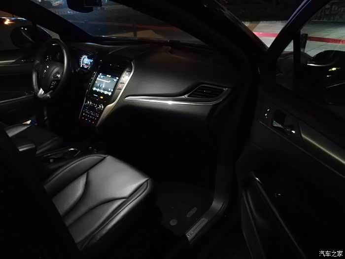 内饰搭配简洁大方,也不失豪华感,中控那一块的设计很有特色。而且车内很多地方都采用了皮质的包裹,手感和视觉感都很好。只是有些细节的做工不是很到位。多功能方向盘很好用,特别喜欢用mkc的按键换挡系统,方便好用。另外不得不说氛围灯确实很有意思,新车味道控制得很好,连我老婆这样挑剔都人都觉得异味很小,车上放了瓶车载香水,味道就完全被淹没了