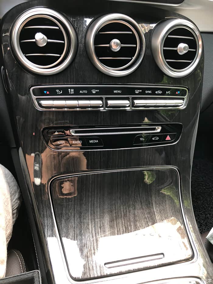 中控面板原来黑色不耐糙,淘了一个木纹风格的,和棕内饰完美无缝衔接