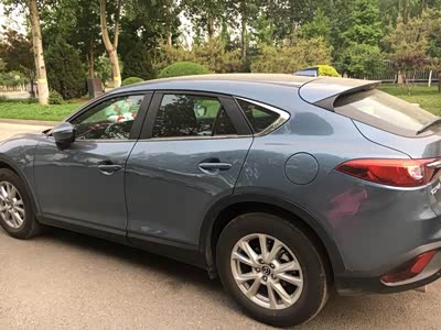 不悔之选——cx-4 ?在漫长的斟酌和考察、经过重重筛选后,综合资金状况在4月20日这个值得纪念的日子里全家去4s店把最适合的cx-4提回家,全家人都很兴奋,女儿坐在车里都不想下车,内部装饰简约大气,迫不及待的开了好几圈,父母和孩子都很喜欢,生活水平的提高使我们的物质生活逐渐提高,同时也很高兴成为了马自达的车主。 我们购买的是星际蓝的那款,刚开始还担心颜色不太常见会不好看,但事实证明真的很好看,个性才是最重要的,把车开在阳光下越看越顺眼,开到公司总会有人围着看这款新车型,鹰的眼睛确实也让人眼前一亮,自己更是爱不释手。刚进4s店时销售人员就进行了详细的解说,包括性能、排量、外观等等,直到现在真的是验证了舒适也不是浪得虚名的,耐脏、舒服、大气是家人朋友们的一致好评,车内宽敞舒适,父母孩子坐在后面聊天娱乐绰绰有余,老婆还在车里放了菠萝皮除去新车的味道。孩子说最喜欢的还是后备箱,的确后备箱还是挺大的,非常实用,一家人出去野餐是再好不过了。车内的一键启动与以往不同,十分方便,车内空间的设计也十分合理,天窗、车载屏幕更是增添了开车时的乐趣,连接车内蓝牙也不会影响行车安全,电子手刹也是让人焕然一新,倒车影像也还算清晰(本人更喜欢看倒后镜),方向盘手感也不错(真的是良心评价),发动机的声音也十分喜欢,cx-4的底盘高度约20公分左右,开车不用担心刮底盘,刹车距离短、反应快,最重要的还是油耗问题,现在油价越来越贵,早就听说这款车省油,开过一段时间发现比想象中的还要好,总之是比较满意的一次购物。