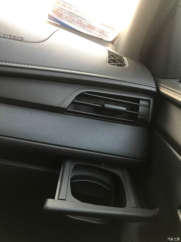 最不喜欢的就是储物空间太少,左前方向盘后面一个,右前副驾靠近门子的部位有杯架,前方腿的部位有个储物箱,放进一个送的夹子,放些保单,使用手册之类的再放个眼镜就满了,不深。带了一个小格子在左侧,也就放个小瓶子就合不上盖了,手挡附近有个不规则的四边形的空位,东西放不住,想放个口香糖就乱咕噜,我就自己拿A4纸折了个小盒子,还可以放个眼药水啥的,手挡旁边只能放个纸票子和停车票,还放不住后车门附近没有储物空间,我就只能给车套个座套,带着储物袋的那种。两个前车门上有可以放置杯子一个,大瓶的不行,可乐饮料之类的可以。听说新款的在这方面有所改良,没切实见过就不做评论了。
