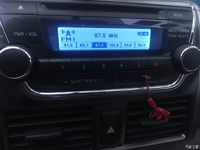 说是黑色内饰,车顶是灰色的,还好,正好我给配的黑红色的座椅套和方向盘套,配置里面带着收音机cd机USB接口,可以来回切换,音量调节的旋转按钮手感很好