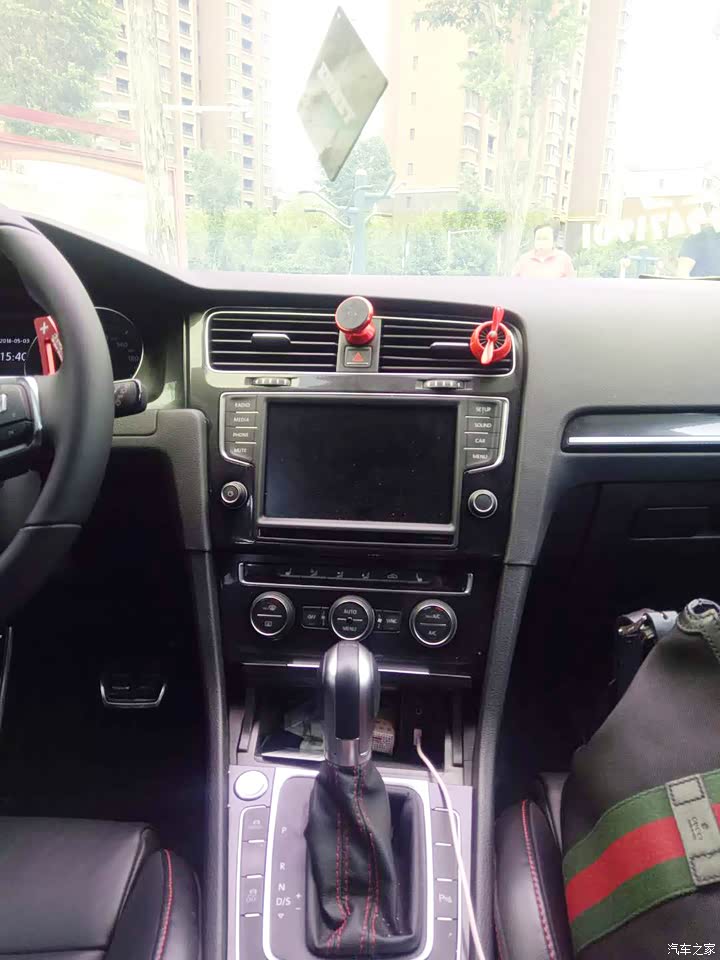 中控台上的硬塑料太多,内饰虽然加了红色车缝线做点缀,但是依然没有改变大众整整齐齐的内饰布局,然后就是换挡拨片有点小,后期自己又小改了一下。