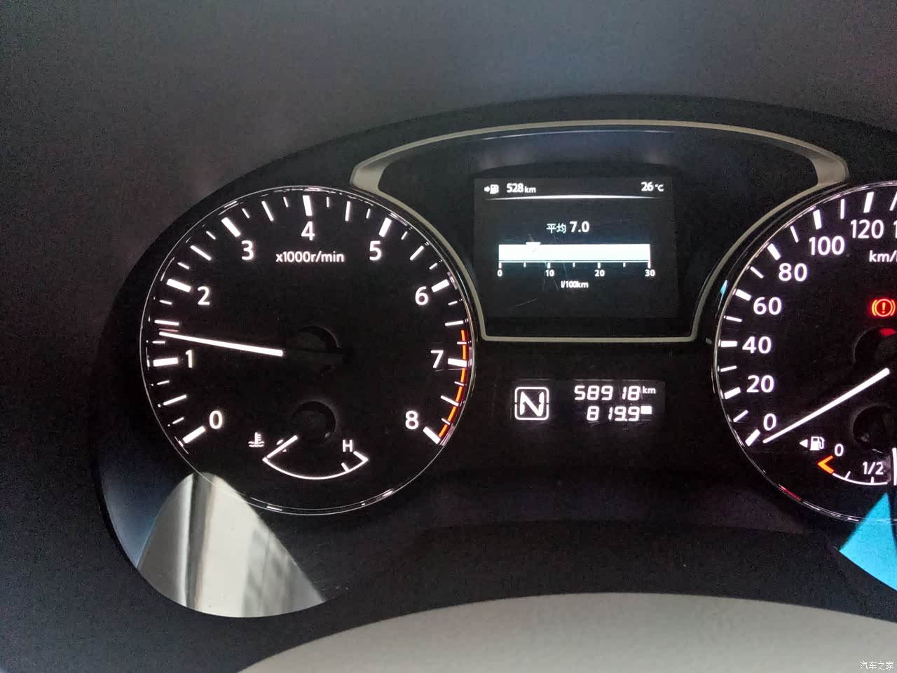 现在就是上下班用车,大部分走城郊公路,表显综合油耗仍然是7.0。感觉冬季油耗还是增加了,大约半个左右吧。天籁车冬天升温还是比较快,开暖气时间不长车内就暖和了。