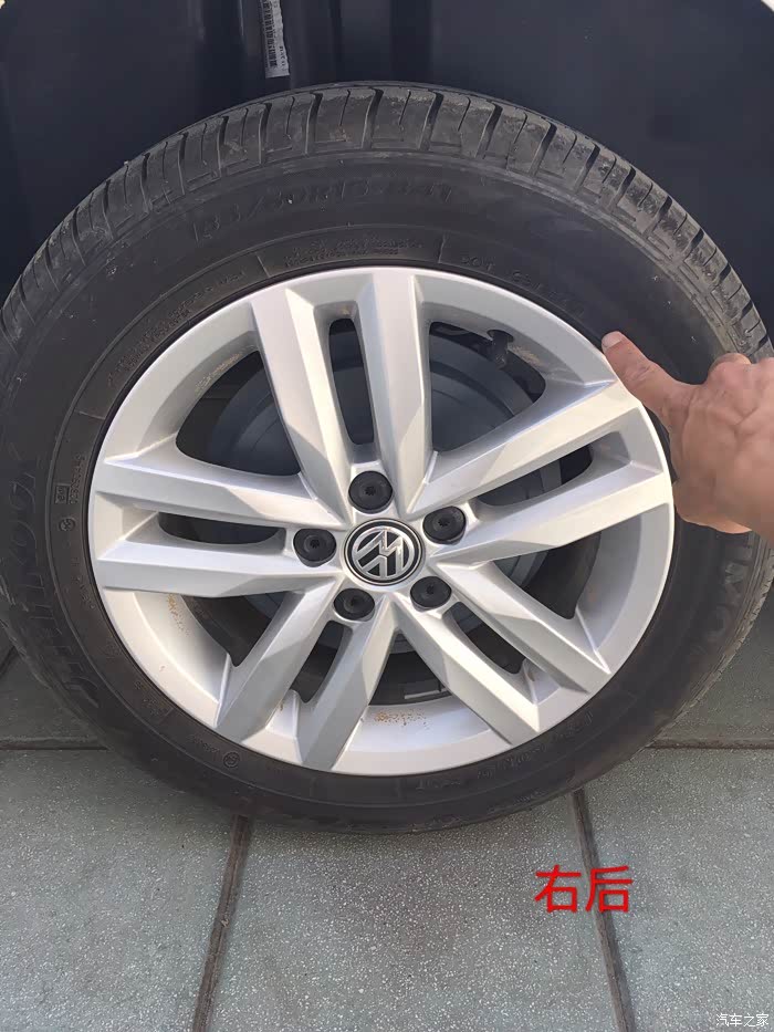 不知道大众这么大的厂家为什么会犯这种错误,轮胎虽然没有反正面,可也不能把轮胎的日期标号装在里面吧!