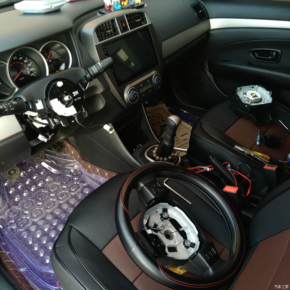 内饰只能说一般般,都是塑料,主副驾驶门内空间太小了一瓶水都放不进去,后门没有,左侧连个小手扣都没有,化妆镜主驾驶有副驾驶没有,谁没事开车的时候还照镜子,刚买了半个月自己按了个多功能方向盘,导航的触摸按键实在是不方便,过几天在装个胎压监测和一键升降车窗。本来还想装个一键启动了,有点小贵,暂时就先不装了。