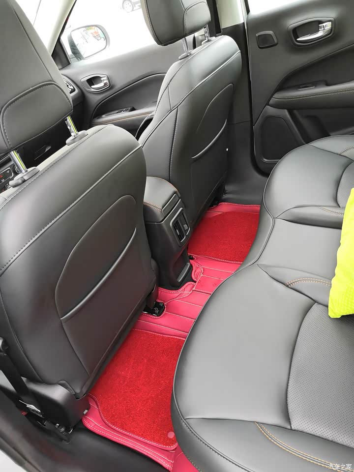 乘坐空间宽敞,后排两大人加一儿童无压力,前后排距离宽敞,且后座中间隆起部位不高。