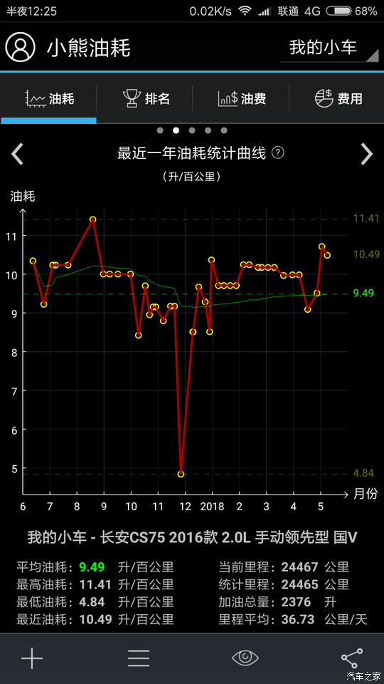 这个提车到现在每次加油累计的,一次不曾落下!所以这个参考意义大于原车的表显吧!