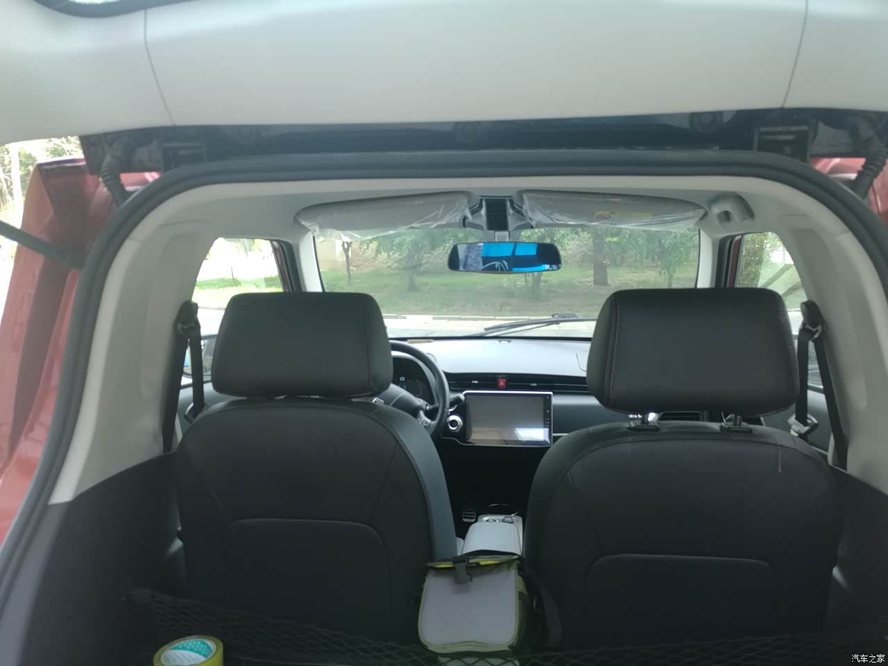 【空间】空间就别要求太高了,车这么小外出附近带孩子玩玩还行,带点零食吃的喝的,超市购物等等,后备箱空间太小了,基本满足家庭妇女带孩子用了,哈哈,副驾驶也有储物箱,也可以放点东西,但是大件的东西只能后备箱的小空间放了,轴距太短了也是,家用足够。