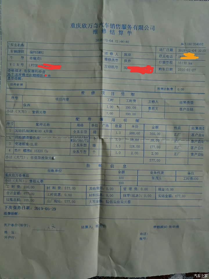 我买车的时候没有送保养,就首保不需要任何费用,后面几次都是多少花了点儿钱,最多的一次被坑了??,毕竟刚买不久,新手不懂嘛!本来不需要那么多的保养项目,多给我加了几项(导致我花了1000元),其实都是没必要保养项目,不要轻易听相关人员说这个那个需要更换,需要维护;偷偷的告诉你们,奇瑞的保养手册上都有而且非常明显的相对应的保养项目,到达一个公里数都有需保养的项目,非常明显清楚,按照上面保养即可??。再和广大车友分享个小秘密哦??!其实保养车的项目都是需要我们结合自身开车的习惯所保养,说得简单点吧!那就是现在的小车主要是上下班,接送小孩读书,周末弄个自驾游,这些其实每次换换机油机滤就可以了,毕竟家用嘛!如果车友不在乎手里的小银子,那就当我没说就好了??!长途自驾游及用车很频繁那就保养项目会多点,毕竟车况在那里,是吧!车是我们的小情人,得注意呵护??!