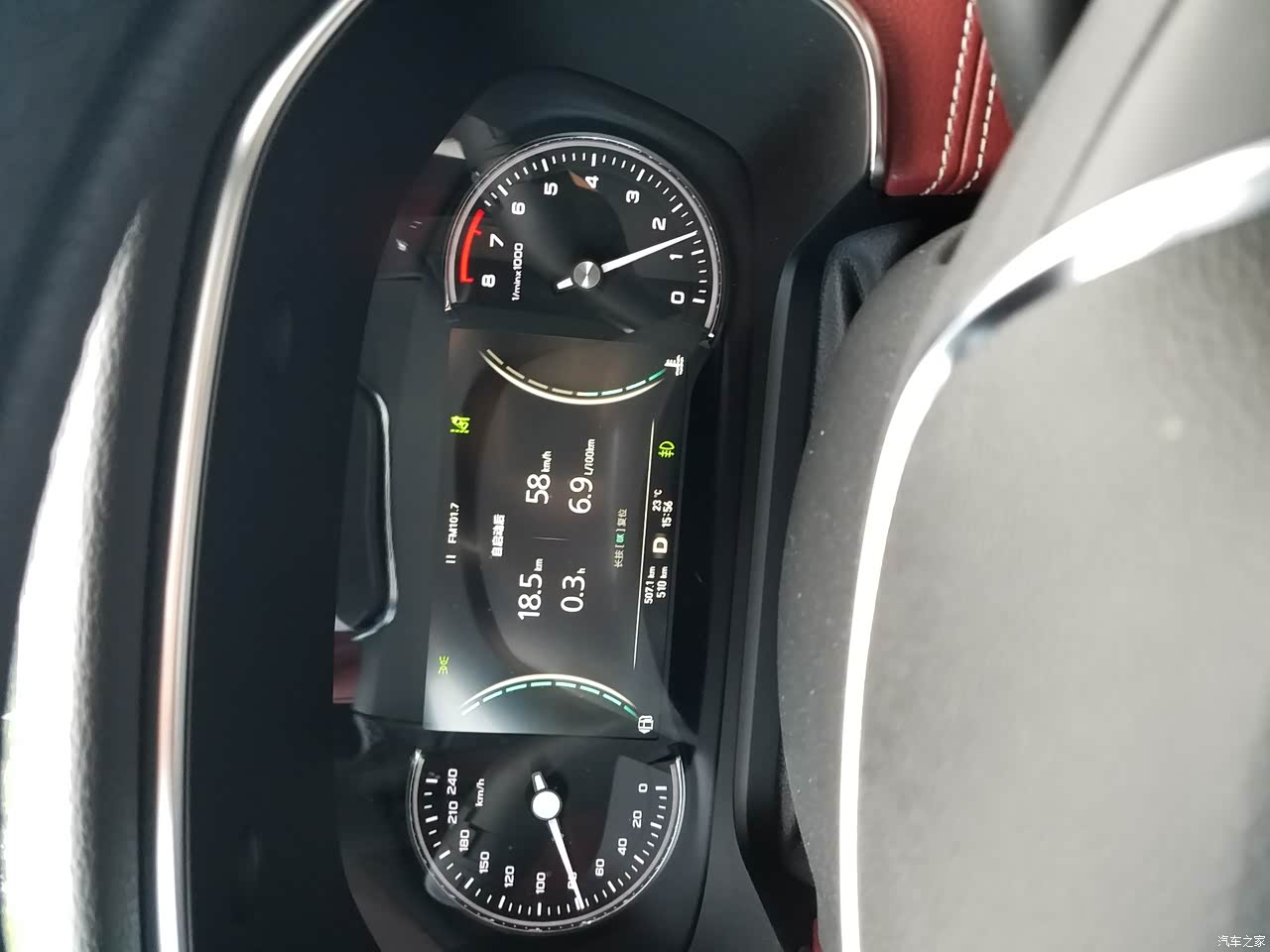 整体内饰精致,软性材质多,用料很是上乘,红黑相映色彩鲜明
