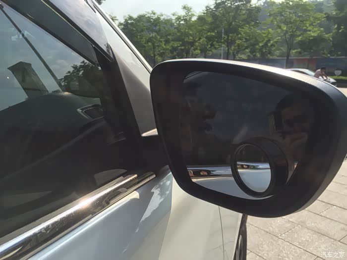 后视镜的面积很大!视野是足够广了!但是有些细节盲区就看不到了!所以自己加了一个小圆镜!可以看见右后轮