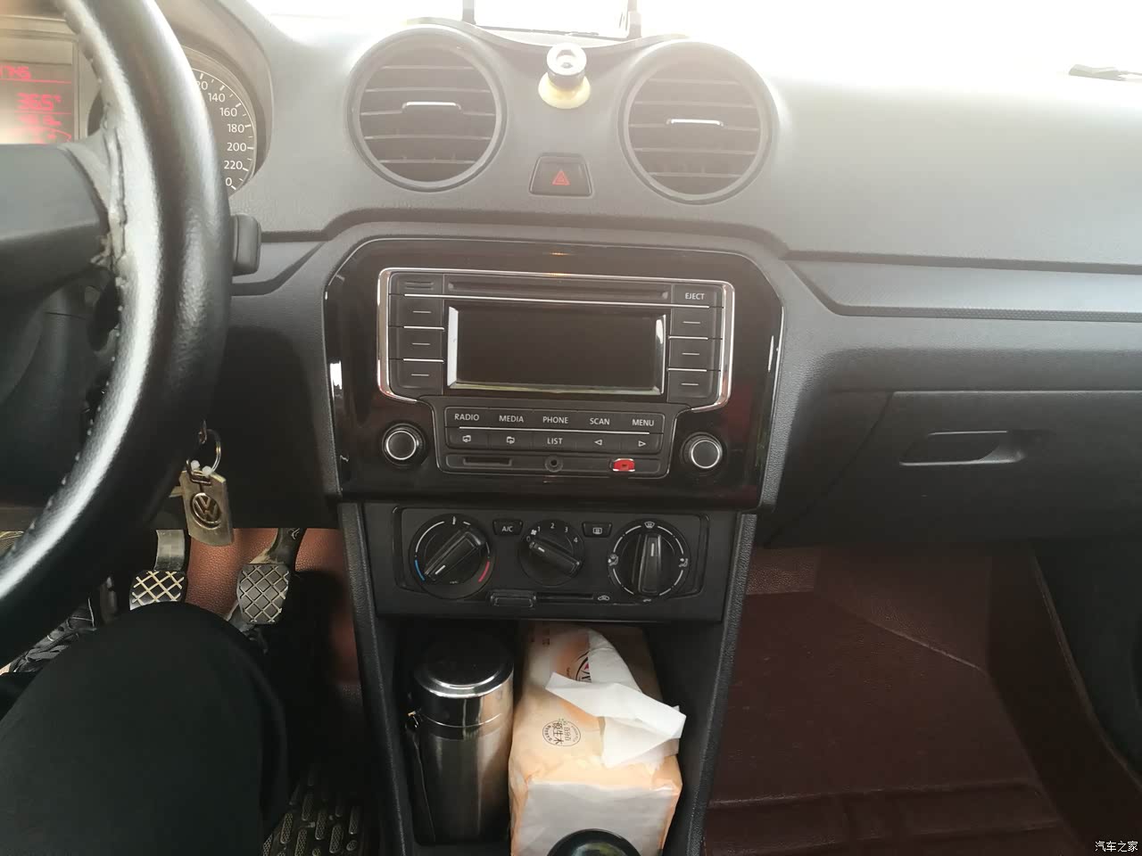 内饰不多说了,大众低配,丐中丐版,说说我改的部位吧,1.防盗报警器,遥控钥匙,遥控钥匙我用断两把了,大家有没有?因为这车打火太沉了,都是在销子处断的。不过我自己会修。2.自动升窗,网上60元淘的,锁车自动升窗。3.导航后视镜,啥功能都有,方便不占空,不影响我喜欢的中空格局。4.自动开启后备箱和LED后尾灯,原先的老是右后刹车灯坏,干脆都换了LED了。