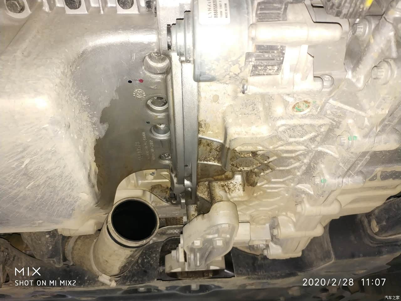 63000公里因刹车震动再次更换前刹车盘,然后既然这样顺便的提前将刹车块一起换掉算了,其实本来是可以再走10000公里才更换也是可以的,看才4S店肯免费给我更换前刹车盘的份上,一起换掉算了。 在春节前的免费检查活动中,发现发动机与变速箱结合处有机油渗油的痕迹,当时的师傅小哥摸过油迹后认为是机油,不是变速箱油,这个部位的油迹有可能是曲轴后油封漏油造成的,建议再开一段时间观察一下,结果过年就遇到这个疫情,车也没怎么开,可这个渗油的事一直压在心里很不舒服,今天眼看着我这己连续5天零确诊病例,胆子也大了,就将车开到4S店让他们好好检查一下,师傅小哥查看好认为是油底壳的紧固螺丝处渗油的油,把螺丝拧下打点胶再紧固,可我始终有疑问,这个位置为什么会渗油,把疑问也跟4S店说了,要求他们与厂方联系,以确认这个位置为什么会有机油出来,售后经理己答应了会专门这个问题报告给厂方,我也就只能是等待答复了。