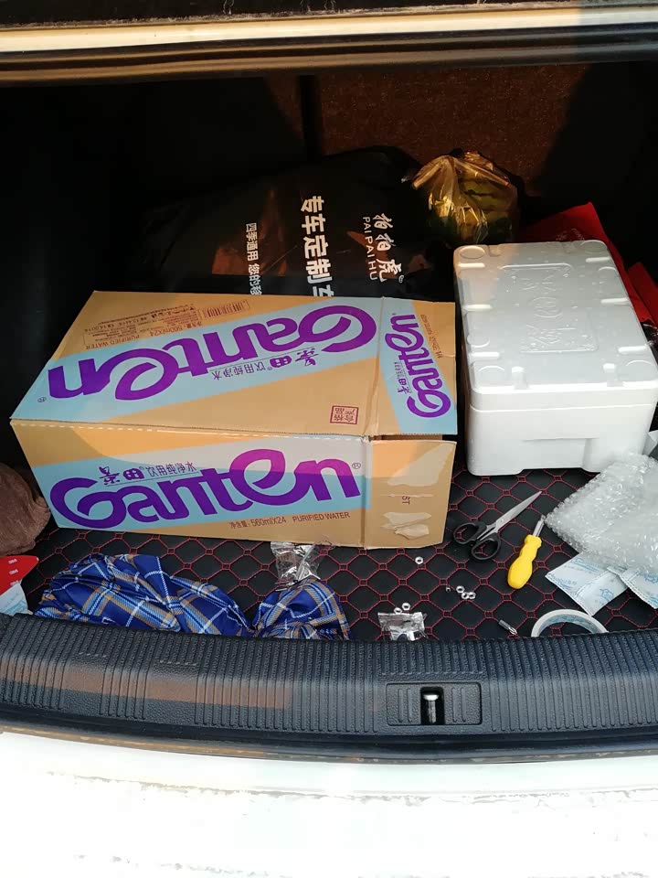 后备箱很大,买了箱矿泉水,车罩,还有竹炭包等等,刚上完车牌就迫不及待拍照了,没收拾比较乱…暂时也没啥放的,节假日走亲访友能排上用场了