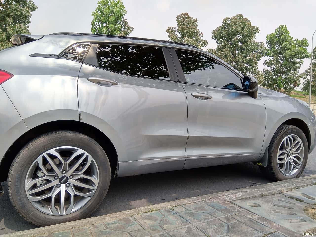 魏派vv5行驶近4万公里,更换了两个轮胎,原车轮胎是米其林轮胎,胎噪控制的不错,但是由于米其林的轮胎就是侧面的很薄,一不小心蹭到侧面就会鼓包,而且轮胎很贵,1300一条,建议以后魏派可以更换其他轮胎。