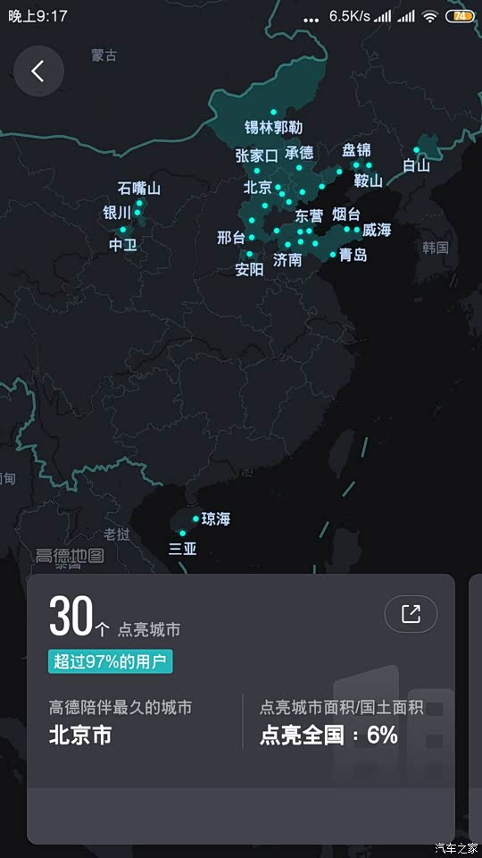 我在高德点亮了30座城市,这些都是开车去过的地方,有一部分还是以前的旧爱凯越跑的!