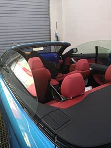 车漆的颜色很有特色,海岸蓝。目前貌似是4系的专属,阳光下和阴影下显出不同的色彩,至少和3系区分开来了。 硬顶敞篷在这个价位上只有Mazda MX-5和这4系了。男人都知道MX-5的驾驶乐趣绝对是一流的,我之前也去Mazda的4s预订过那500台限量的RF版本,然而最后还是因为老婆可能还需要接小孩还有丈母娘啥的放弃了那辆纯粹为乐趣而生的车选择了4系。硬顶敞篷寿命与车身同长,而且不会被手欠的划破,虽然重量很大,但还是值得的。硬顶盖上后也不会太高调,在现在单位里bba满天飞的情况下,出入单位也不会算太高调。