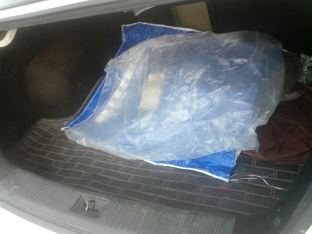 宽敞的后备箱,为了方便放了一点小东西在里面,呵呵我的钓鱼的装备,随时开起我的小逸出去玩啊,钓鱼,方便