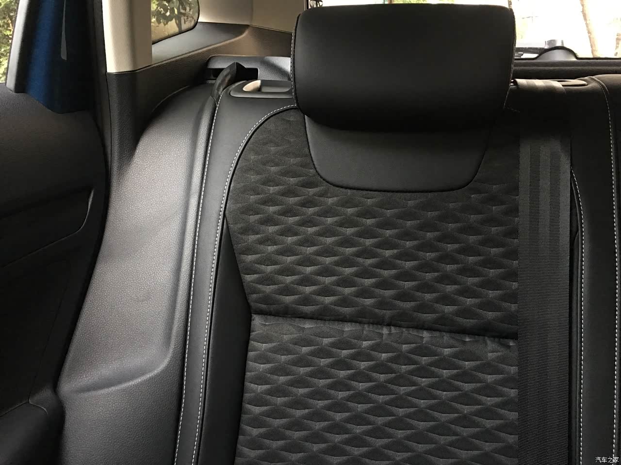 座椅偏软的,高配是真皮和布料两种,摸起来也是比较舒服的。