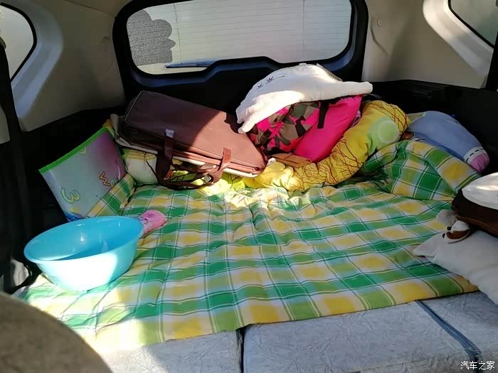 上次出去游玩晚上直接就在车里面睡觉的,空间美美的,本人一米八的个子都可以躺直,座位之间松松的放下大水桶