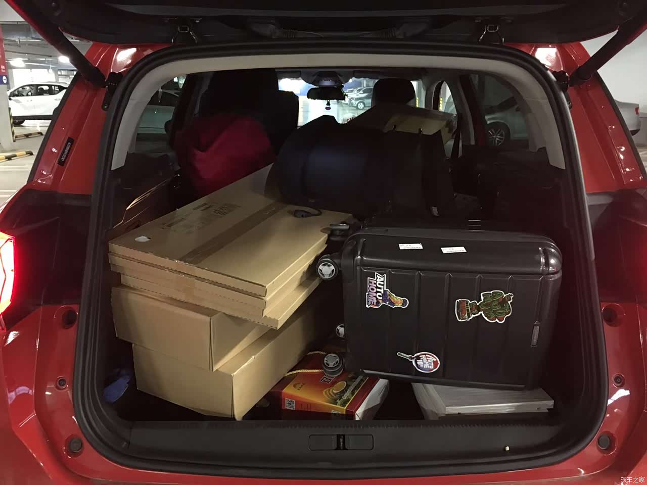 放行李箱不算是压力,买了个拆装的柜子,180CM-120CM,这么长的拆解件被天逸轻松“吞下”当然我们两口子也有地方乘坐。服务员帮着装的车,期初还在怀疑,这能装的下吗?事实给了他一记重拳,就是这么残酷,现实是还有点空间。要不再采购一点锅碗瓢盆啥的?