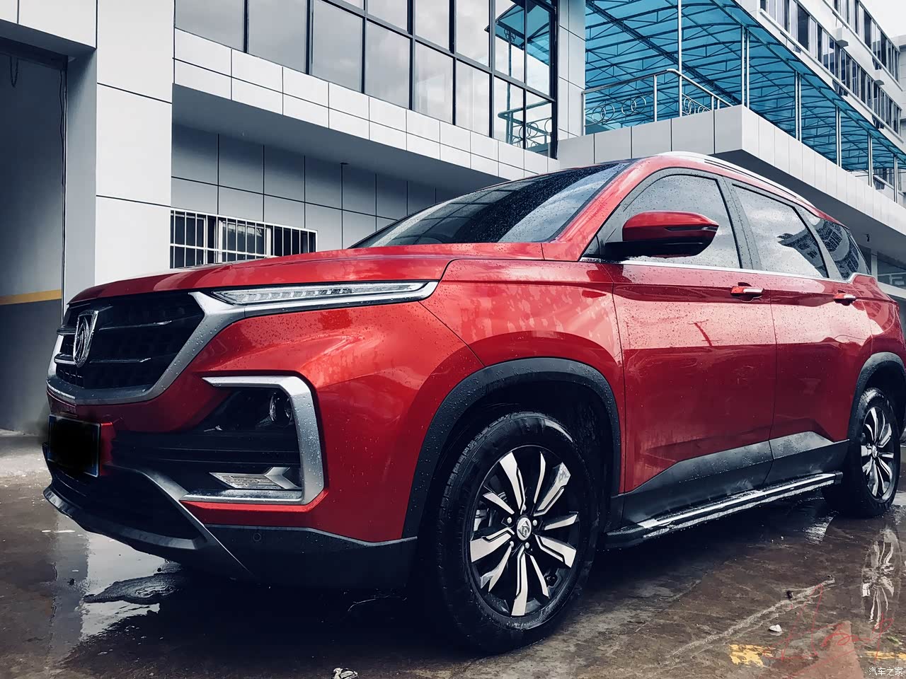 正面,棱角分明,非常有力量感,车头很高,高大威猛。最喜欢它的未来眼日间行车灯,又安全又漂亮,很有档次,还可以实现转向灯同步进行闪烁,很特别炫酷!车漆方面没得说,琉璃红一个字,骚!对我来说,非红色不选,说车是小老婆,我好还就非红娘不娶了,哈哈!侧面来说很流畅,悬浮车顶也是时下的流行,虽然现在的审美更新速度很快,但是我觉得敢称型鲨的她是不会过时的!