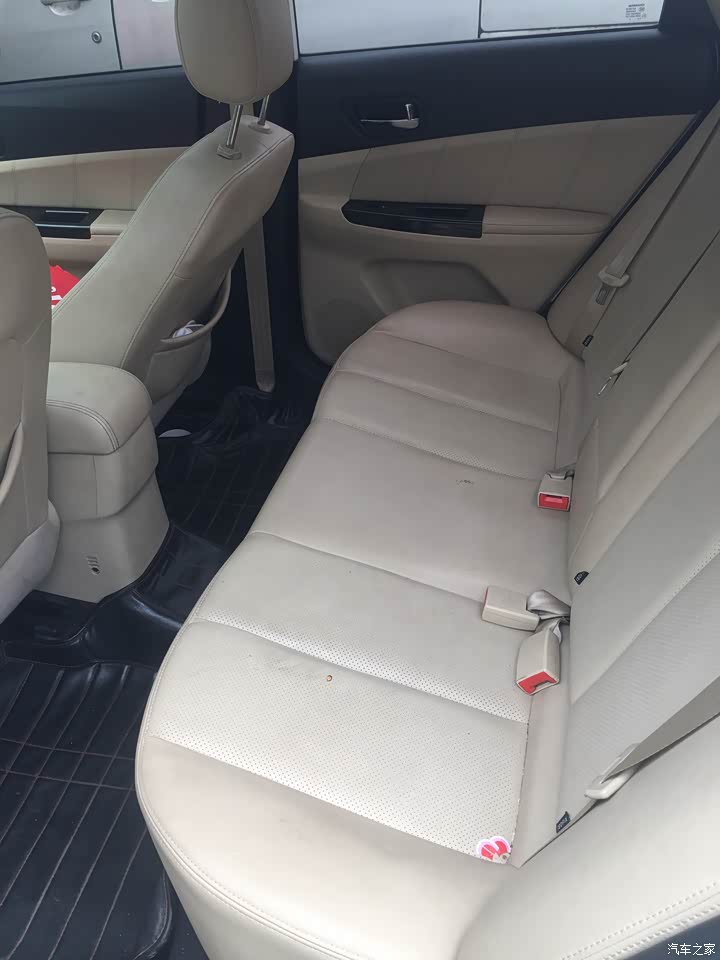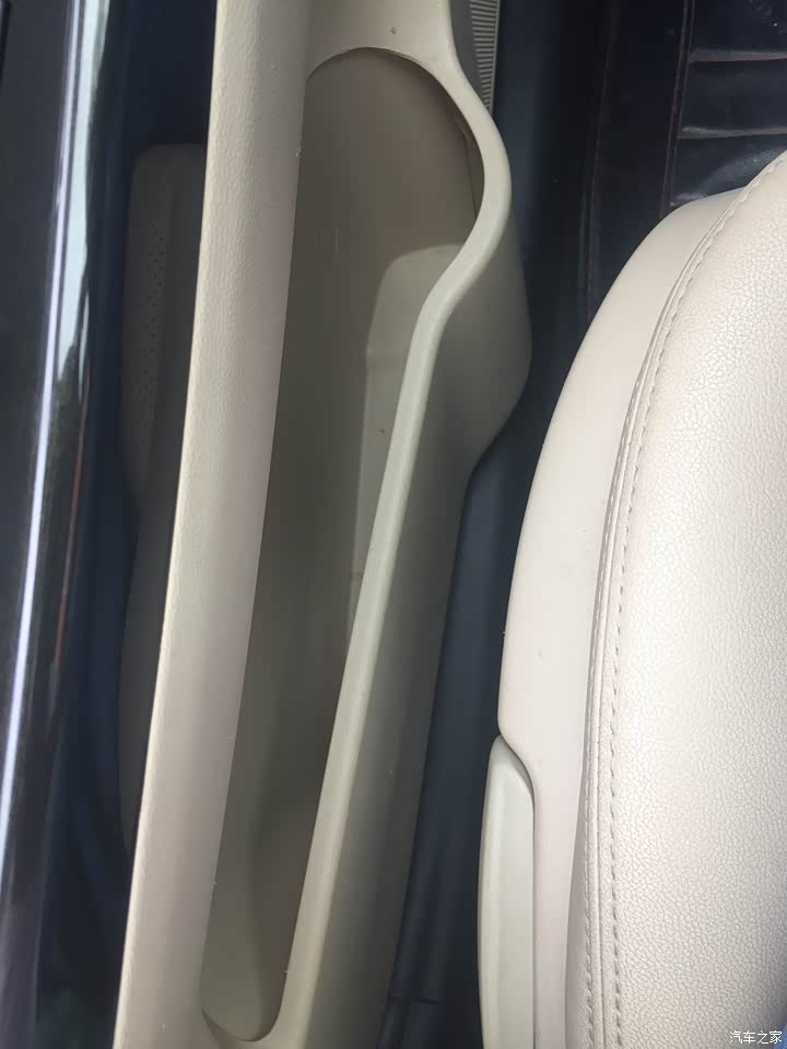 米白色内饰搭配黑色中控台,相得益彰,米白温馨,但就是不耐脏,幸好皮质座椅用湿毛巾擦擦就干净了。不足的是这个配置只有这一款颜色,没的选。
