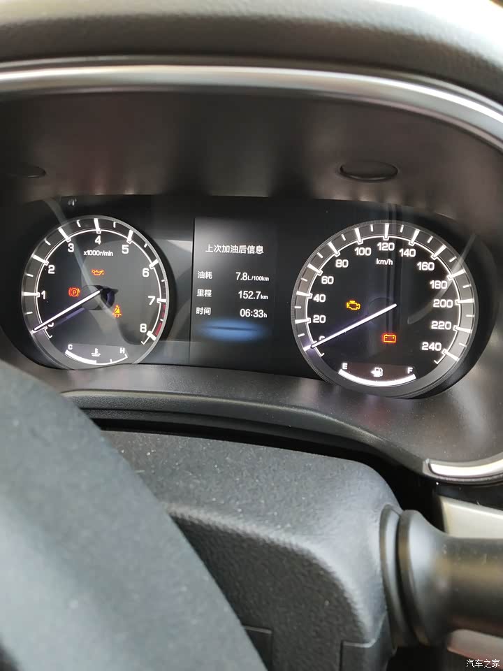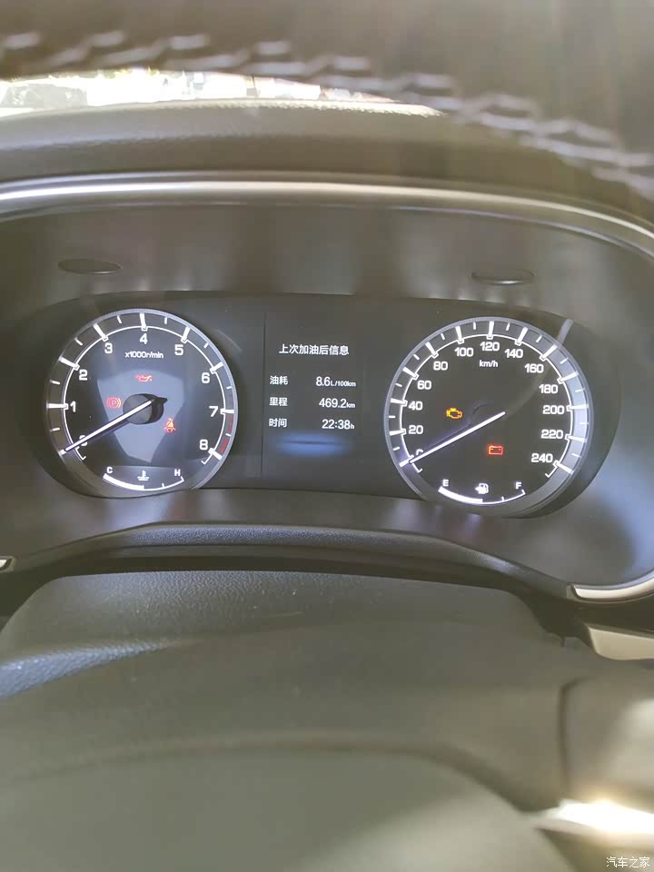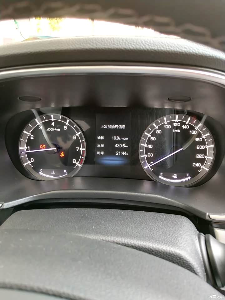 这是最近的一次加油表显,这次加油还没亮黄灯,应该能跑500公里左右,刚提车的时候,一箱油开430km